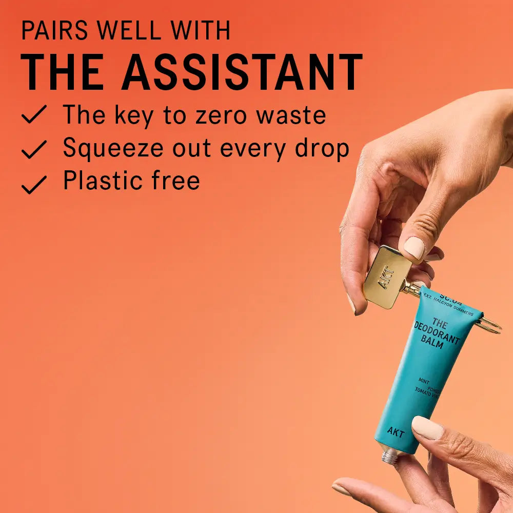 Pierce the seal with The Assistant or a pen. Squeeze a small amount of The Deodorant Balm on your finger or The Applicator and massage onto freshly cleansed skin – underarms, forehead, feet or chest – anywhere you need effective, all day protection.